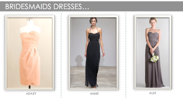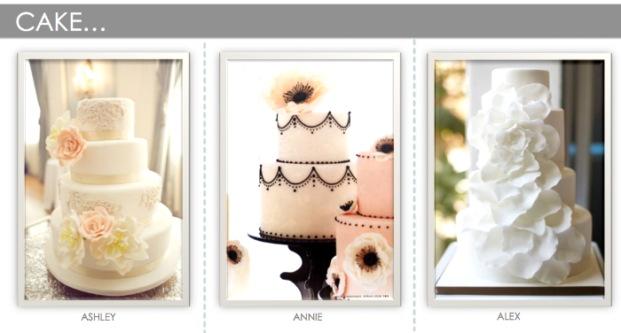 annie had the fabulous idea for us to share our wedding vision and she's put our picks side-by-side. i had so much fun putting mine together and loved seeing annie's and alex's choices. they both have such great taste and i know their weddings will be beautiful!